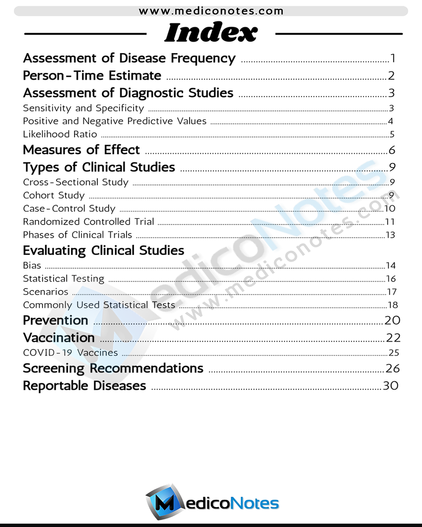 - Quick review of biostatistics and epidemiology formulas before exams